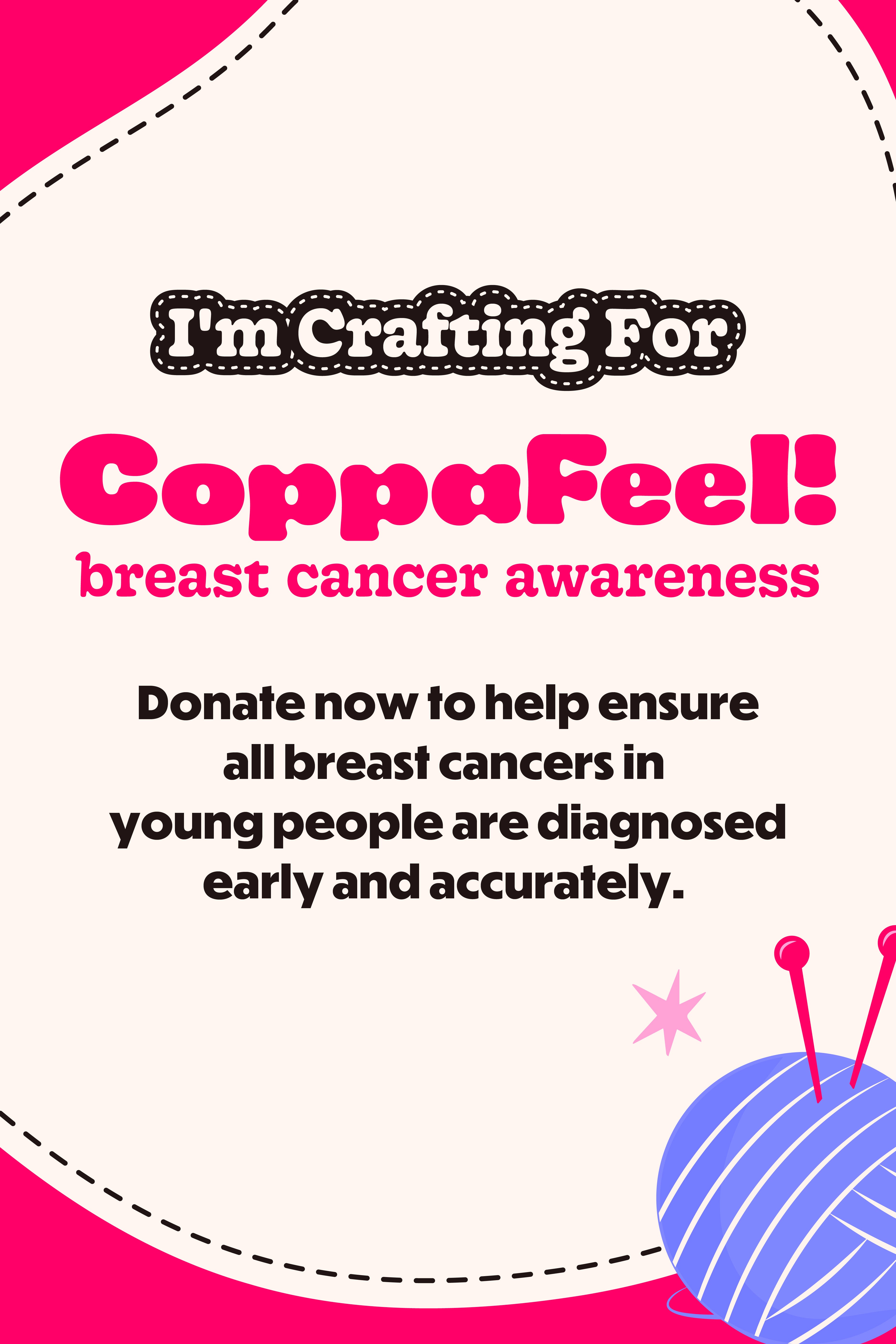 If you’re not able to join the knit-a-long or purchase a kit, but would still like to support Charlie’s trek and Coppafeel’s vital work, you can donate directly to Charlie’s fundraising page here – every pound helps her reach her goal. Thank you so much for helping us make this project count.