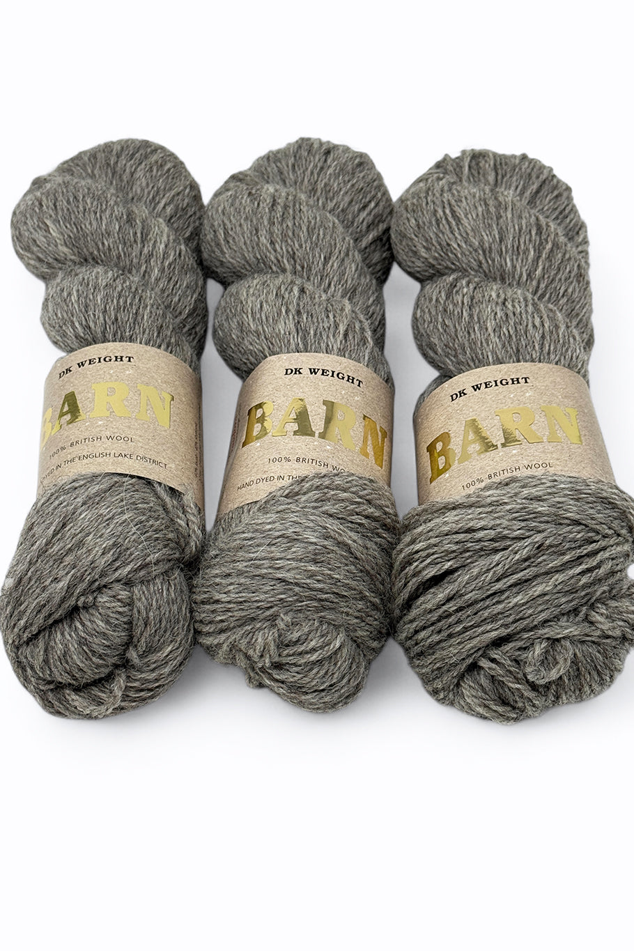 This artisanal yarn has been blended and spun exclusively for Susan Crawford at a local mill, using a unique blend of Jacobs and white and black Shetland fleeces, to create a delightfully lofty, soft, grey yarn displaying the distinctive characteristics of these wonderful sheep breeds. The yarn has been worsted spun for added smoothness, softness and longevity but retains a wonderful plumpness making the yarn warm and cocooning. Barn creates fabric with a beautiful texture, equally good in plain stitch patterns as well as textural patterns, cables and lace.