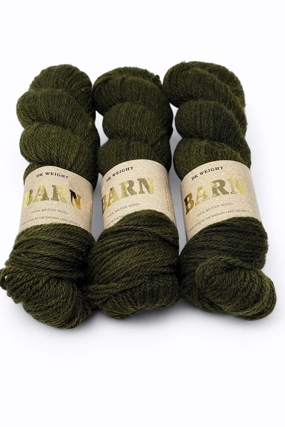 Undergrowth is a deep, dark green reflecting the deepest parts of the woods where the leaves of the trees turn almost black in the shadows. The subtle variations in shades playing across the surface of the yarn.