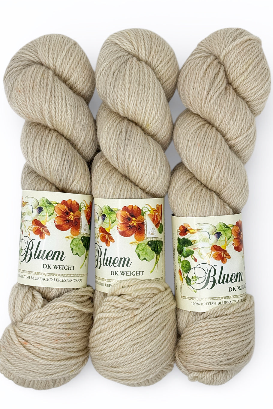 100% British Bluefaced Leicester wool, spun at a local mill and hand-dyed by Susan and her team at their Lake District dye studio, in a wide range of beautiful and varied shades. Bluem DK takes colour extremely well resulting in rich, semi-solid shades. Bluem DK is a non-superwash yarn and should be washed by hand in cool water with a gentle wool wash.This DK weight yarn is worsted spun, with a honey-like softness and a delightful, lustrous finish. Perfect for wearing next to the skin and everything from shawls to sweaters or hats.