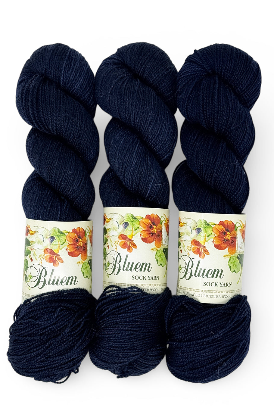 Bluem sock is a Fingering weight yarn, worsted spun with a high twist making it perfect for socks. The Bluefaced Leicester yarn is a soft but resilient fibre and combined with a small amount of nylon, it creates the perfect fabric for socks. The yarn shows off texture, cables and lace to great effect and the fibre combination takes colour beautifully.