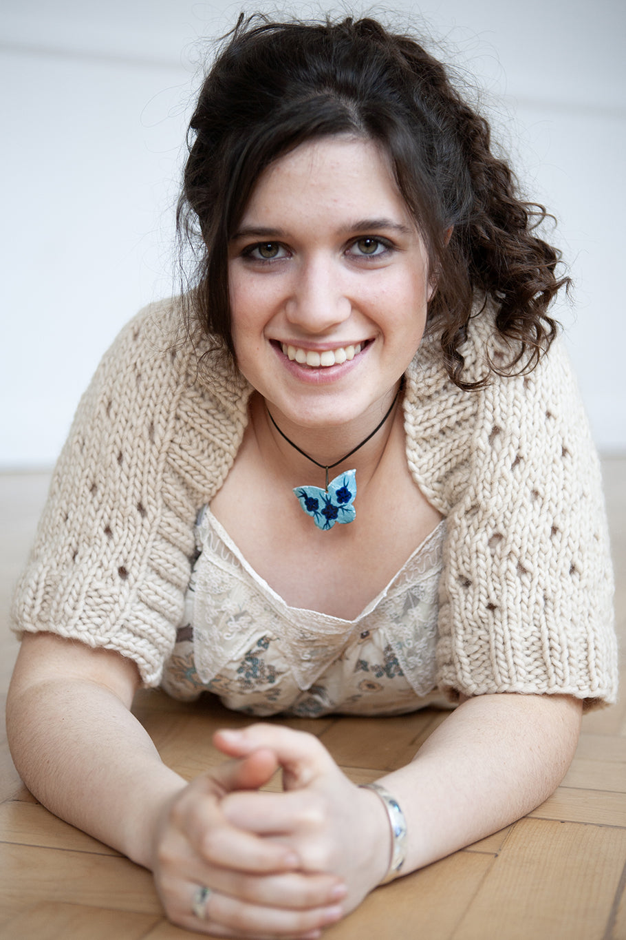 A one-off knitted sample of an original design by Susan Crawford knitted using Rowan Big Wool in oatmeal. This chunky shrug uses simple eyelets to create an interest texture which is edged with a deep ribbed border. Perfect for long summer days or covering up on chillier evenings!
